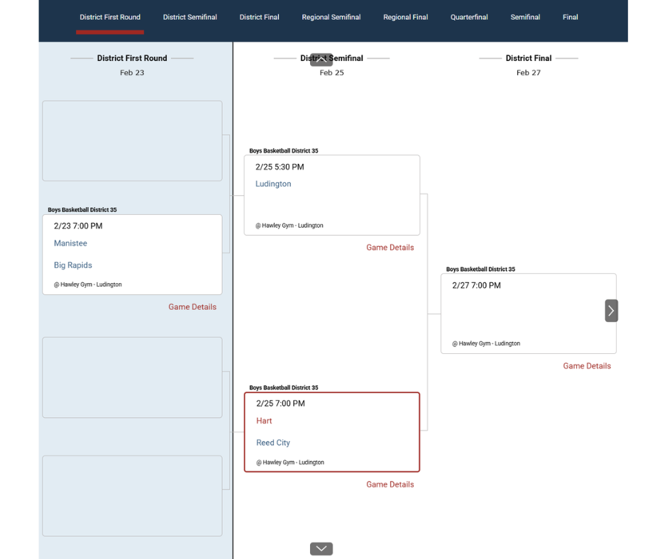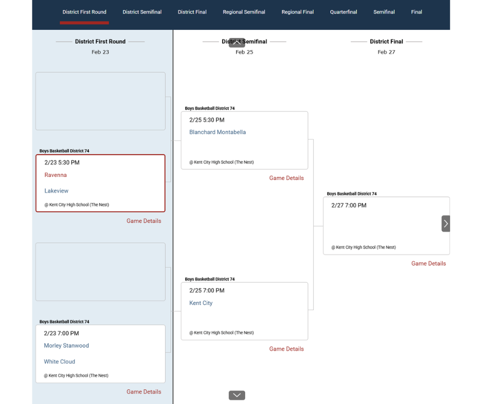 Lastly, District 4 features a strong group of teams. Greenville will match up with conference opponent Cedar Springs, a team they defeated twice during the regular season. On the other side of the bracket, Mona Shores faces conference foe Reeths-Puffer, and Shores also won both regular-season meetings.